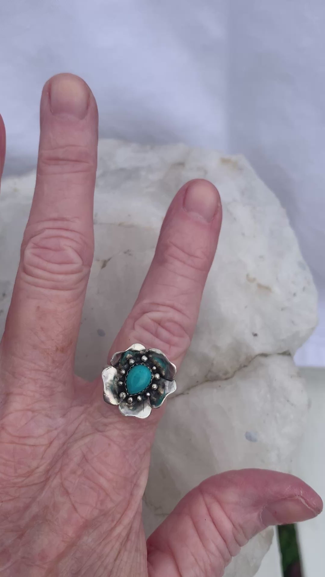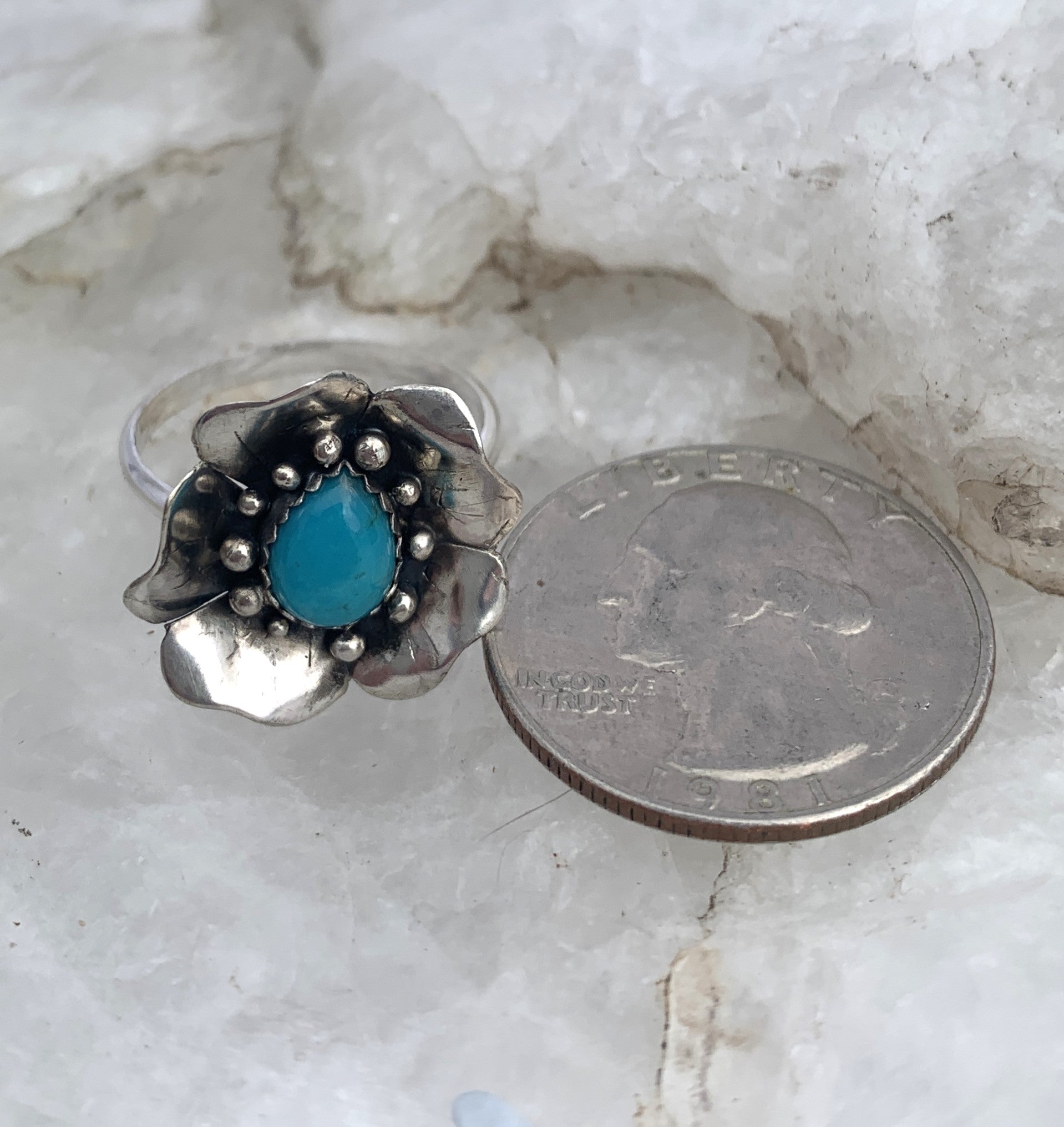 Handmade Sterling Silver Turquoise Flower Ring